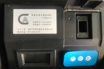 用移液器取被測水樣1.5mL于小號玻璃樣槽,加純水到玻璃樣槽上面的刻度線,加入氨氮試劑Ⅰ10滴,蓋上白色塑料小蓋子,搖勻,再加氨氮試劑Ⅱ10滴,蓋上白色塑料小蓋子,搖勻,靜置5分鐘后,用紙巾或軟布將玻璃樣槽上面的水跡和指紋擦干凈,放入下面樣槽座,蓋上樣槽蓋,選擇讀數…