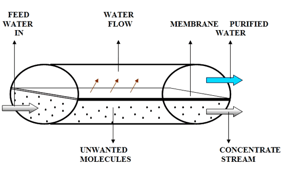 通過(guò)錯(cuò)流過(guò)濾,進(jìn)料流連續(xù)地流過(guò)膜,任何不通過(guò)膜的物質(zhì)都會(huì)與交叉流一起被運(yùn)送并被送到排污口。以這種方式“反滲透”的過(guò)程可以不間斷地進(jìn)行,而不會(huì)堵塞膜。