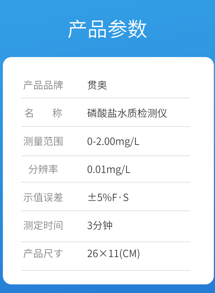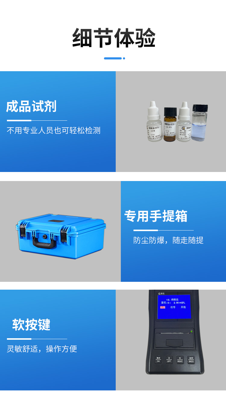 磷酸鹽水質檢測儀器參數(shù)配置: